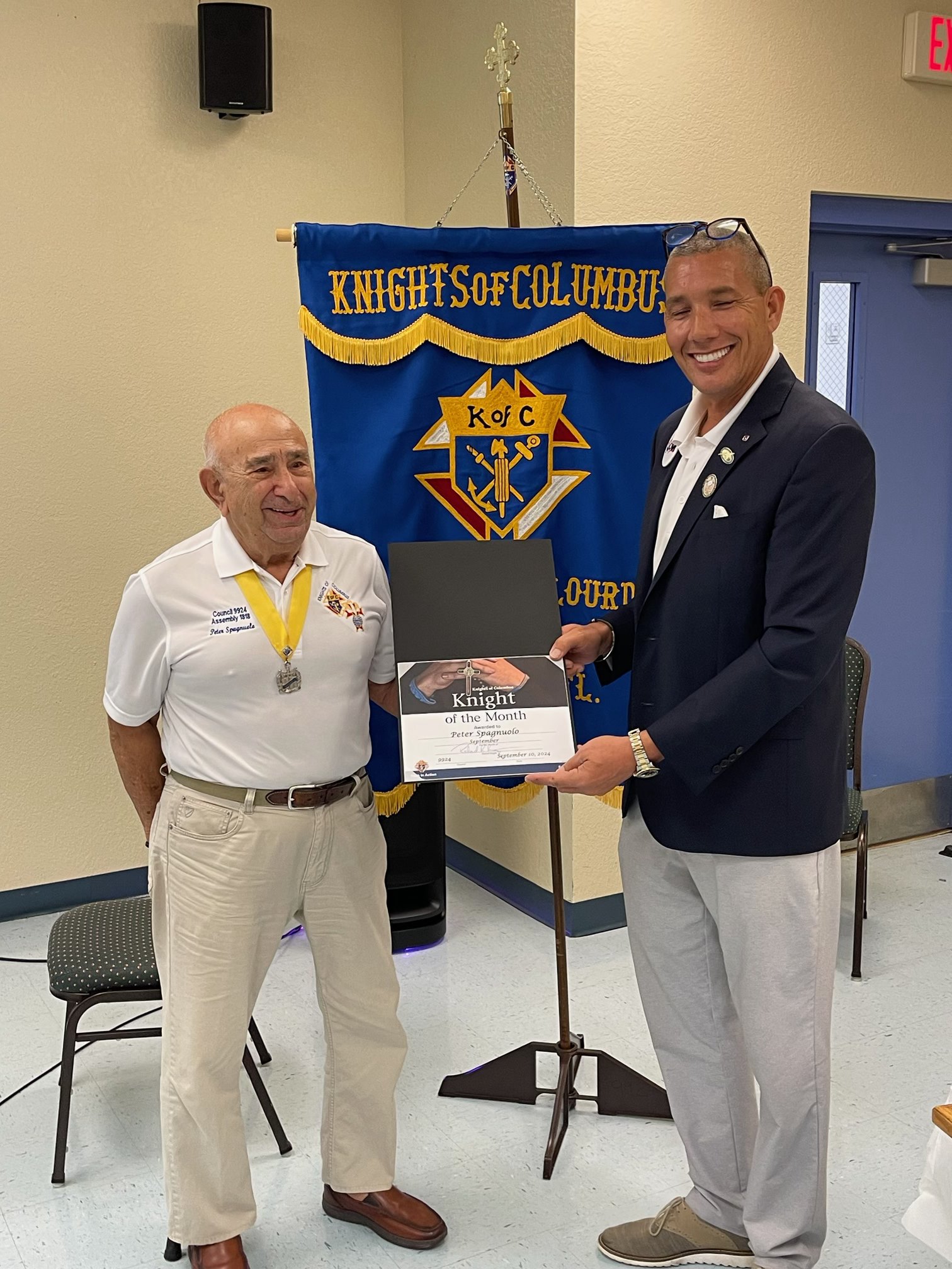 Grand Knight Rick Kuertz of Council 9924 presents Peter Spagnuolo Knight of the Month for September 2024
