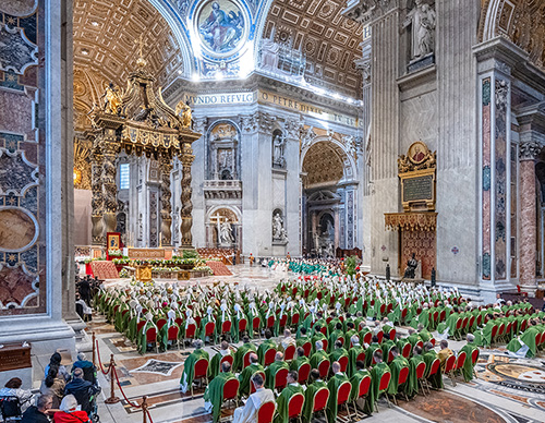 The closing Mass of the Synod of Bishops on synodality was celebrated Oct. 27 in St. Peter’s Basilica under the newly restored Bernini baldacchino, now free of scaffolding and gleaming brightly after a monthslong cleaning and preservation project supported by the Knights of Columbus.
