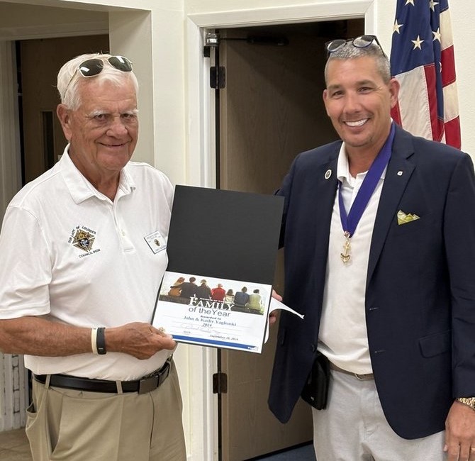Worthy Grand Knight Rick Kuertz presents John and Kathy Yaglenski
