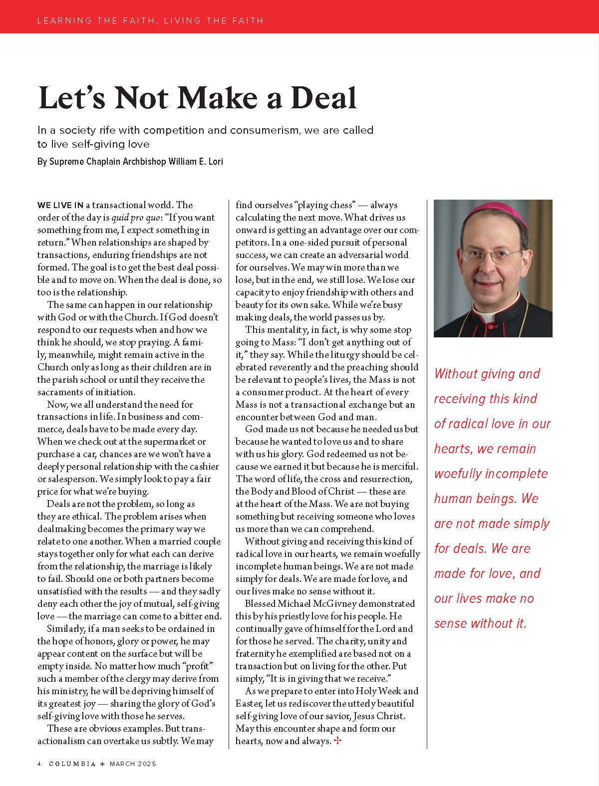 An insightful read from the March, 2025 edition of the Columbia, appropriate for our Holy Week and Easter preparation