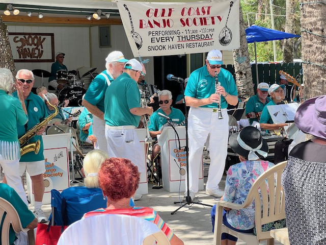 On Arpril 3rd, 2025 a dozen or so brothers met for BBQ, Brew and Banjos at the legendary Snook Haven eatery on the Myakka River in Venice. Our band of Brothers was among hundreds of other guests who came to experience this vestige of Ole' Florida before it closes for renovations at the end of the month. The BBQ was superb and the Gulf Coast Banjo Society provided a perfect backdrop for this unique and enjoyable gathering.
