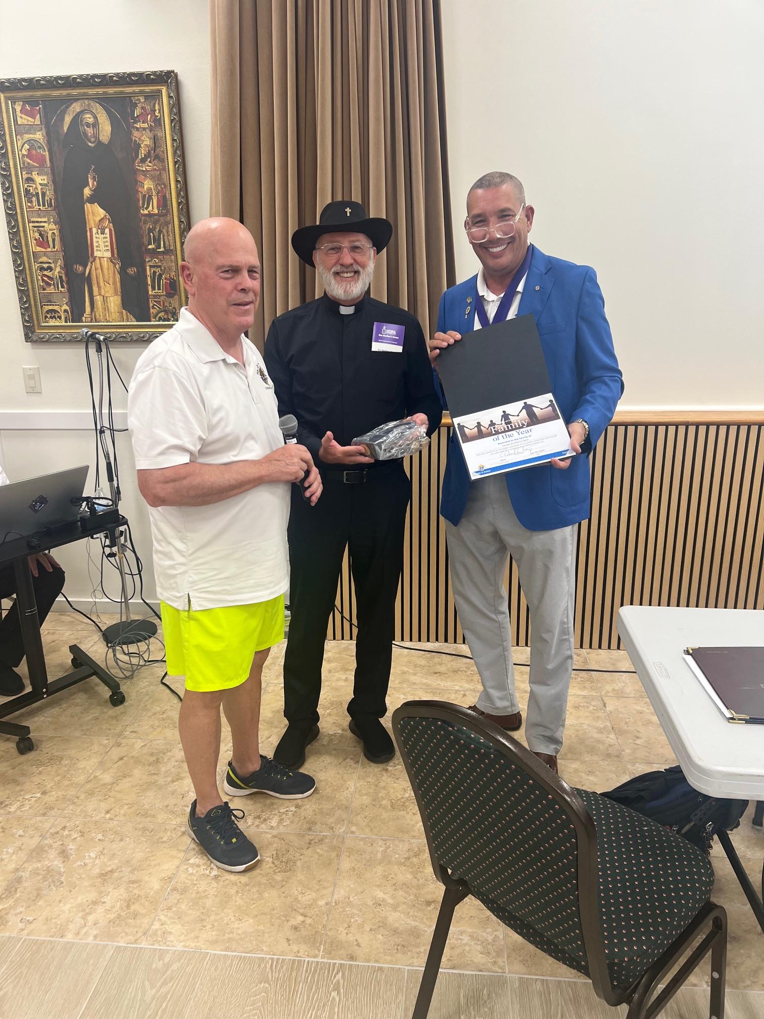 Council 9924 Grand Knight Rick Kuertz & Our Lady of Lourdes Pastor Rev. Jay Jancarz present George & Kathy Bevis Family of the Year Award