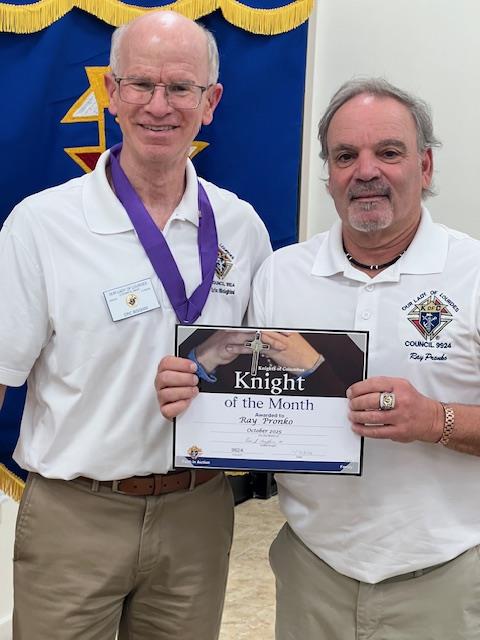 Ray Pronko is presented with the November 2025 Knight of the Month Award
