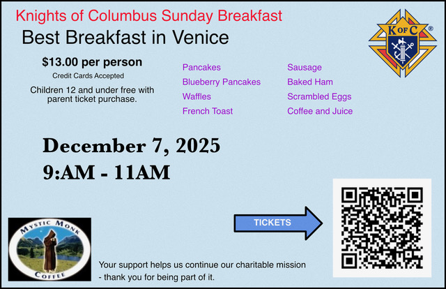 Your presence would mean the world to us as we gather once again to share a delicious meal, sip Mystic Monk coffee, and support the charitable efforts of Our Lady of Lourdes Knights of Columbus Council 9924.